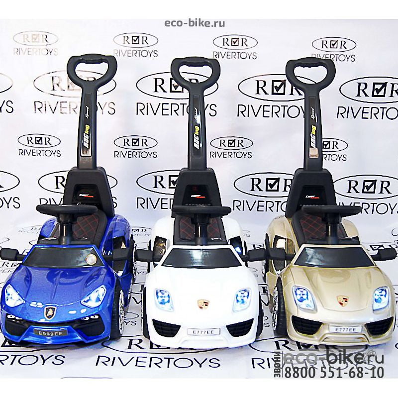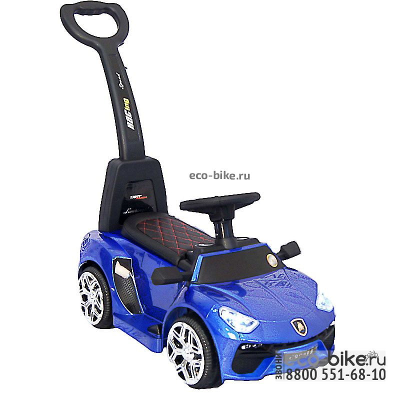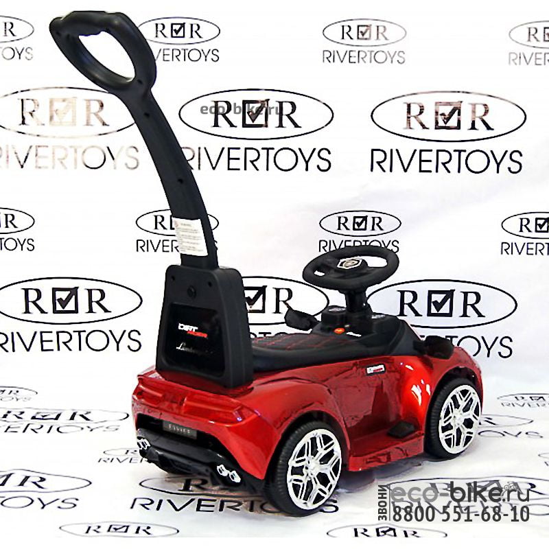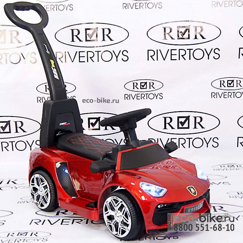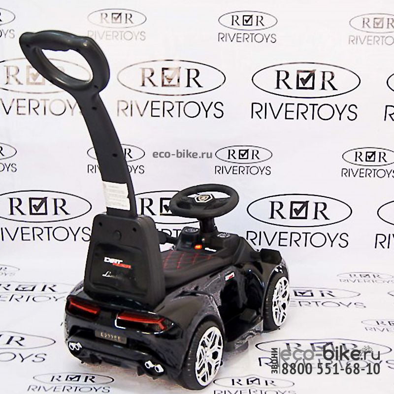 Rivertoys Lamborghini E999EE — отличная и надежная игрушка с хорошими характеристиками. Подходит для тех, кто только начал вставать или уже уверенно держится в мобиле. Он поможет развить координацию и моторику во время прогулок. Движение происходит с помощью отталкивания ножек от земли. После долго катания ребенок устает, на этот случай родители вставляют ручку в сидение и везут — отталкивая, второй вариант - он сам нажимает на педаль газа едет (под правую ногу). Четыре колеса - широкие и устойчивые к непредвиденным ситуациям.